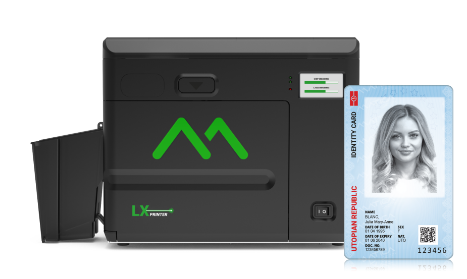 MATICA LX激光机结构紧凑,采用最新激光技术,机器拥有多模组解决方案,如浮雕、微文字、CLI或MLI光栅等嵌入式安全功能以及双卡盒实现大批量或多种卡型选择,能够满足绝大部分安全证卡的激光雕刻要求,是身份证、驾照及行驶证、政府、军队、警察等证件激光个性化需求的理想之选!